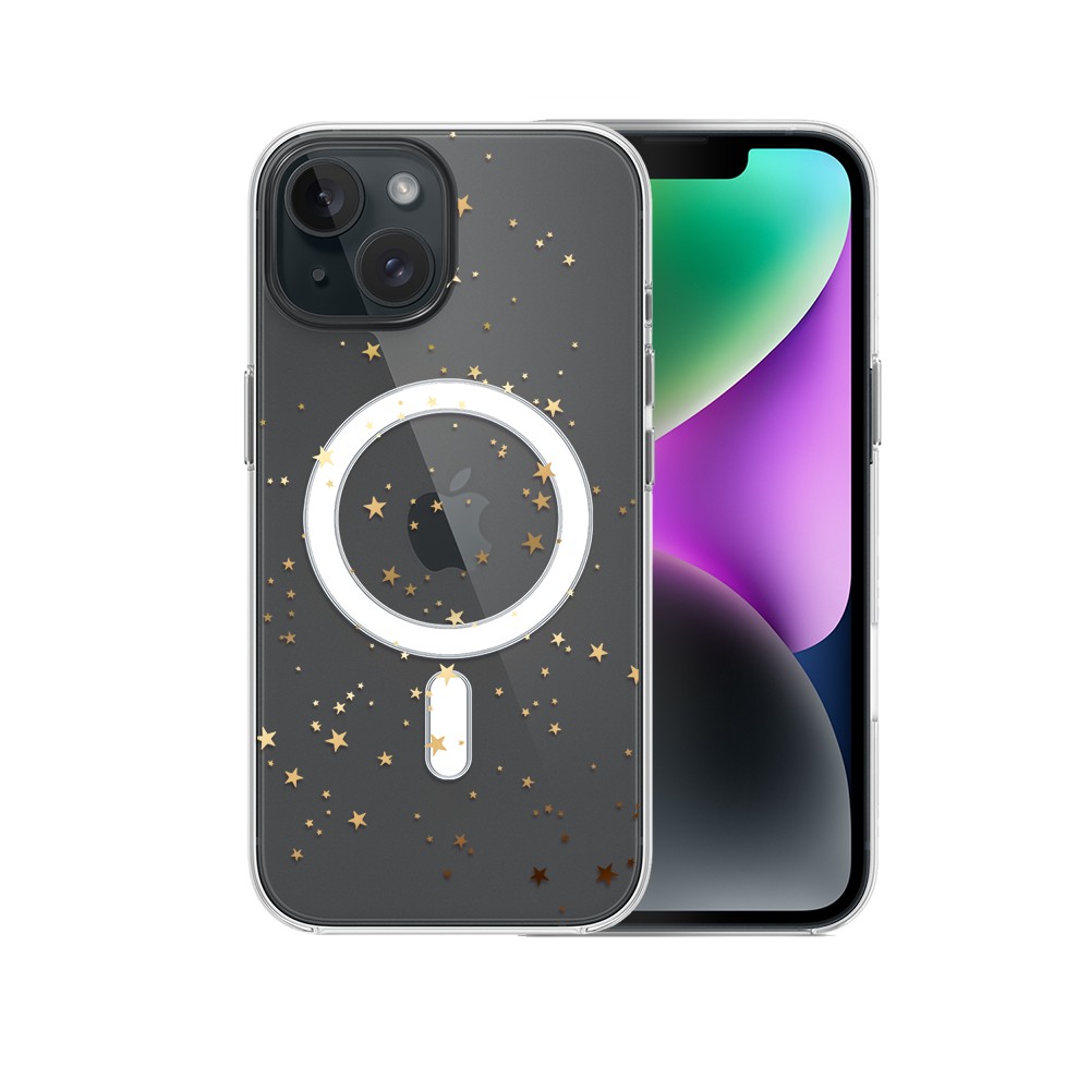 etui do iphone 14 plus ibizu elite skin ultra cienkie, krystalicznie czyste z metalową ramką, złote z magsafe