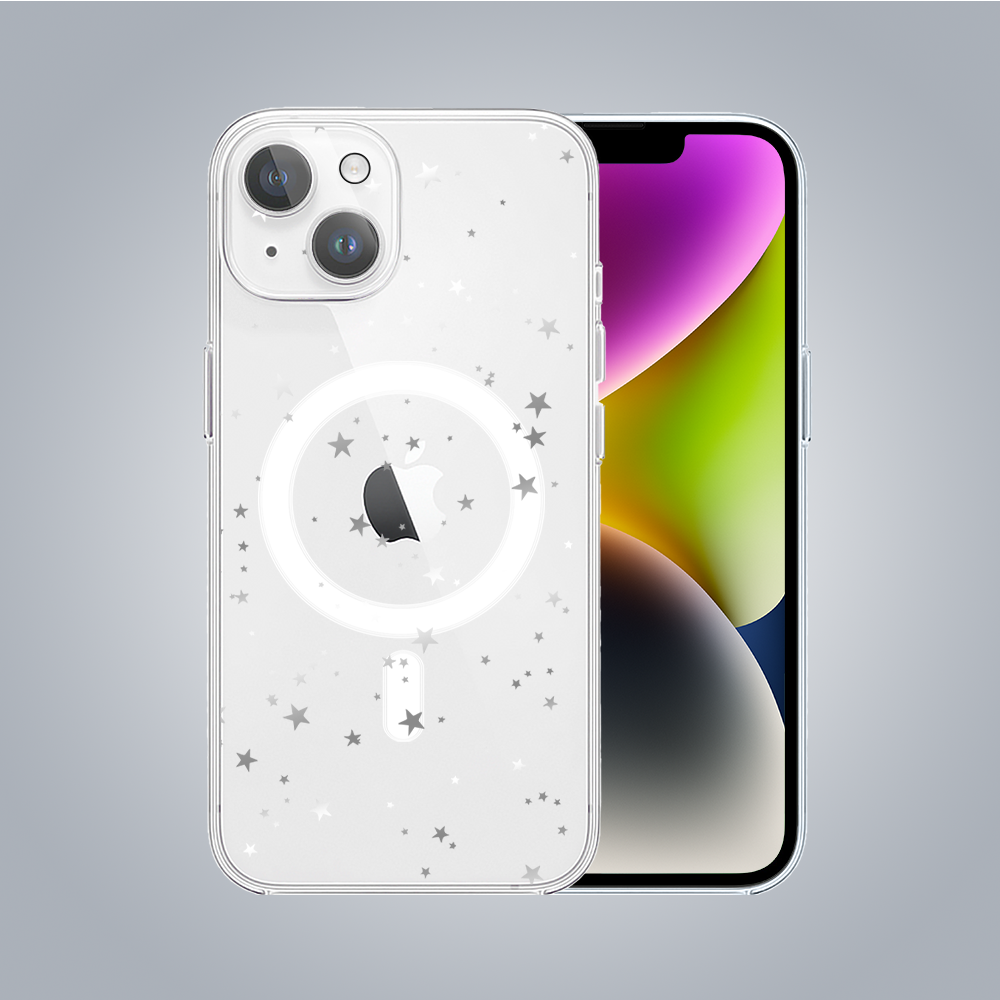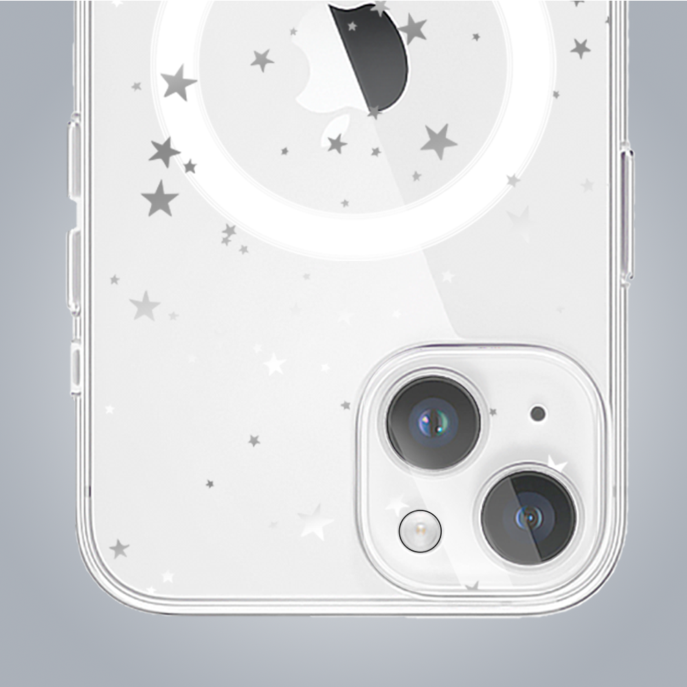 • Etui do iPhone 14 Plus z MagSafe, złote gwiazdki, przeźroczyste
