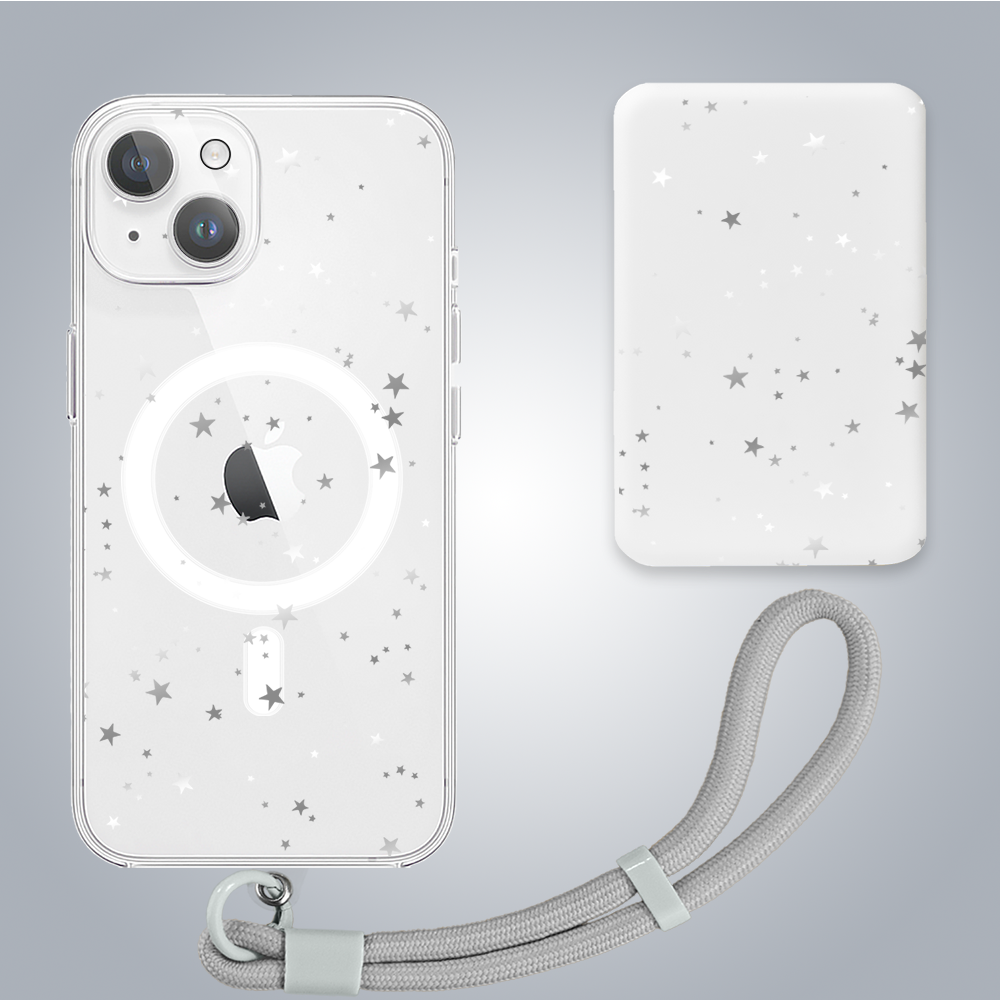 Etuitelefon.pl > Akcesoria do iphone 14 plus > Etui iphone 14 plus > Zestaw do iphone 14 plus: etui, szkło na aparat, power bank, szampańskie gwiazdki