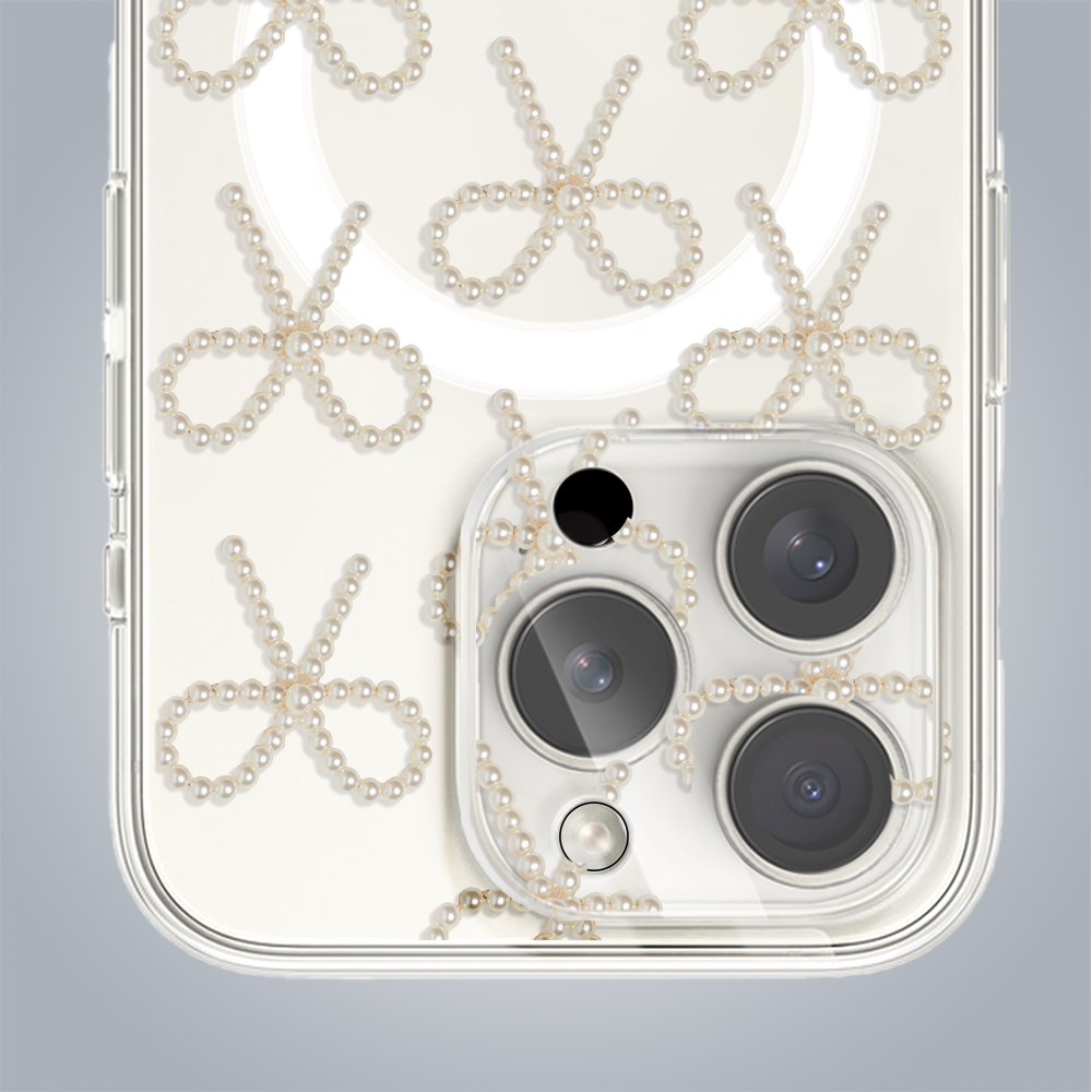 • Etui do iPhone 14 Pro z MagSafe, złote kokardki, przeźroczyste