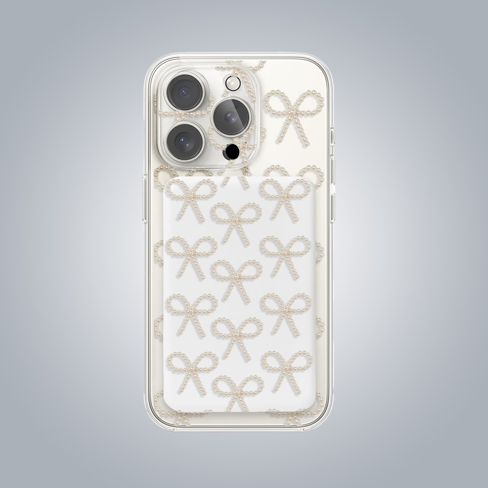 • Power bank MagSafe 5000mAh ładowanie bezprzewodowe, złote kokardki, biały