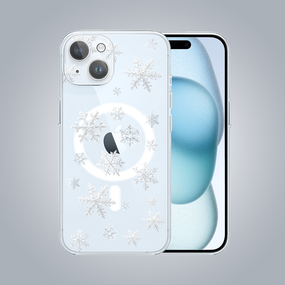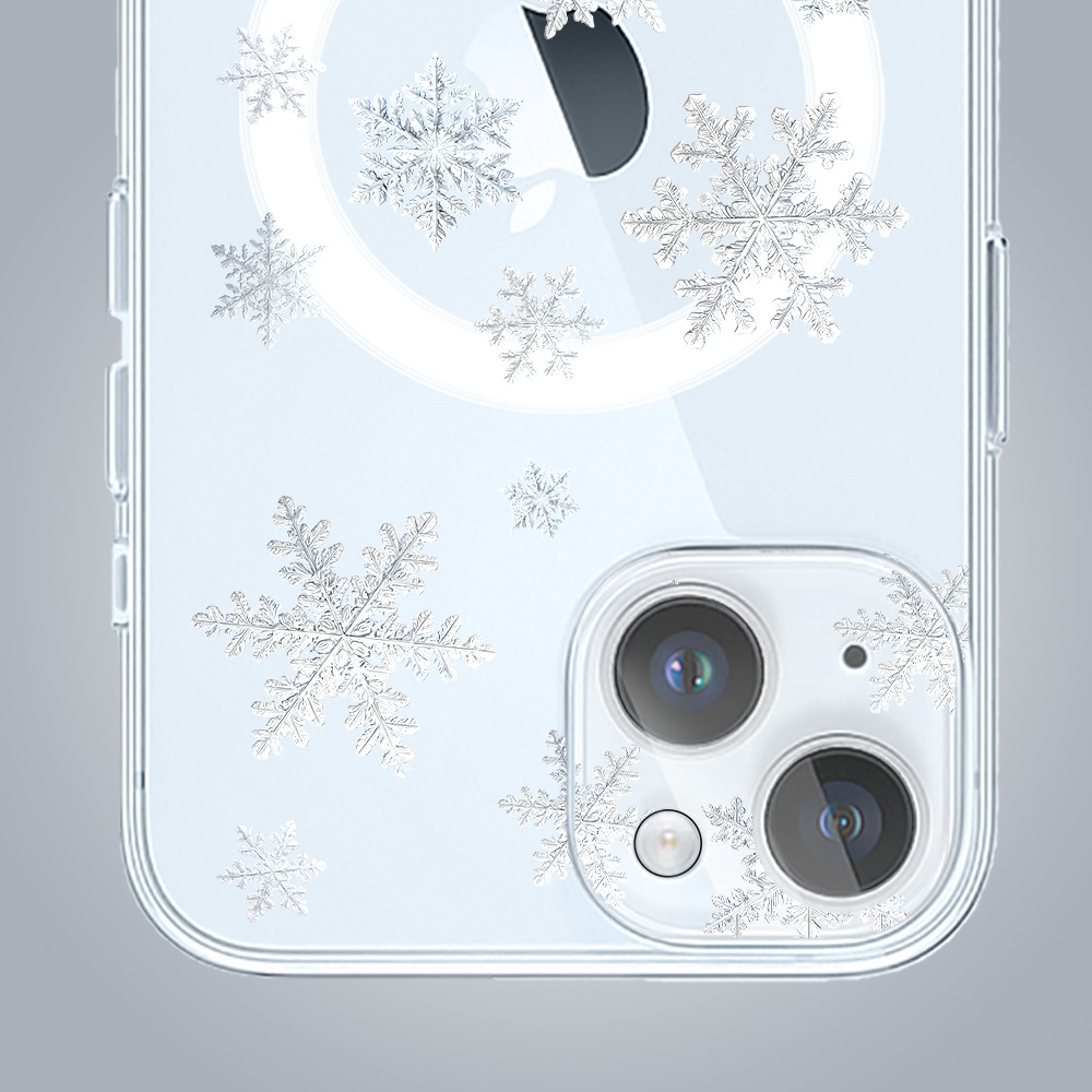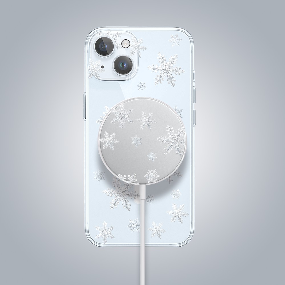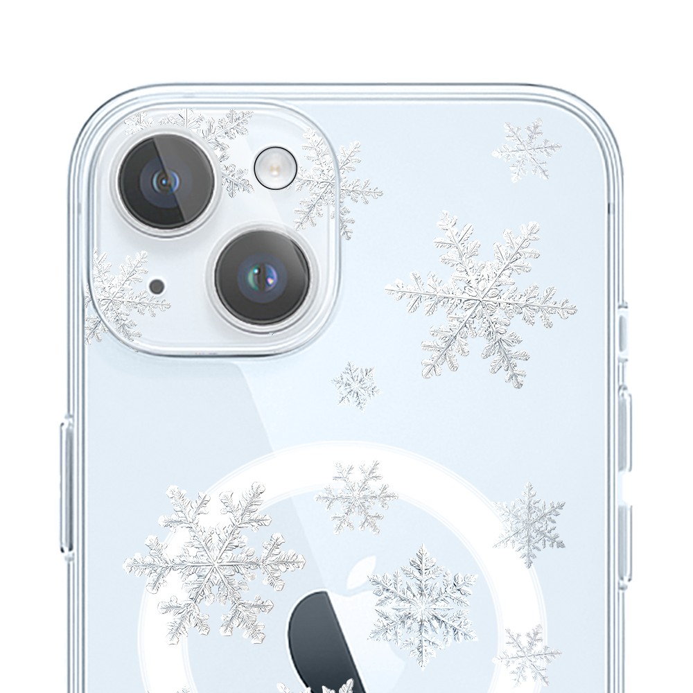 • Etui do iPhone 15 z MagSafe, delikatne płatki śniegu, przeźroczyste