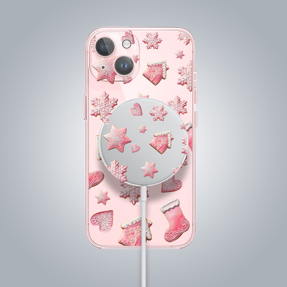 • Etui na ładowarkę MagSafe antypoślizgowe, transparentne z wzorem różowe pierniczki