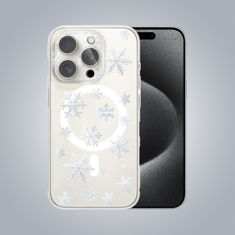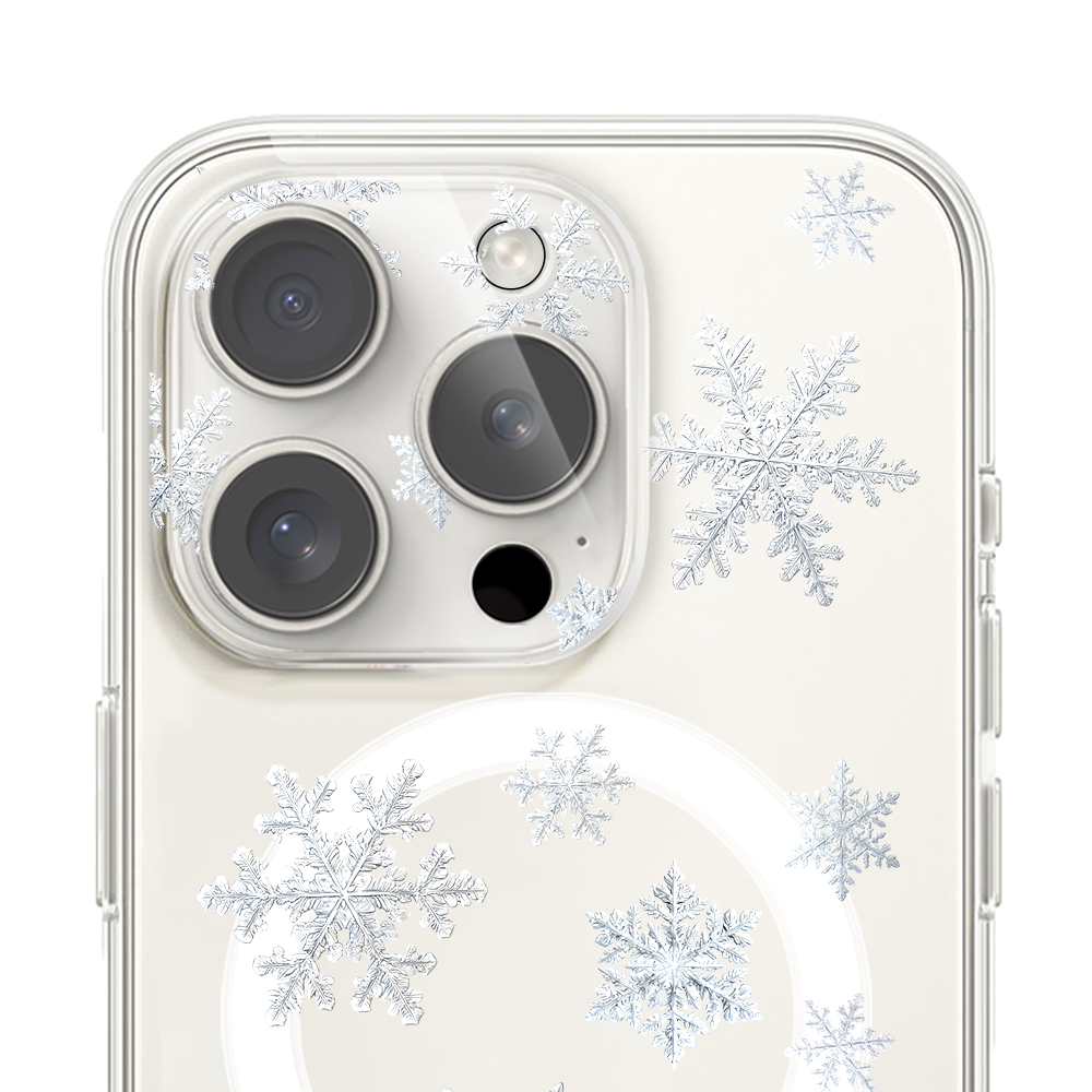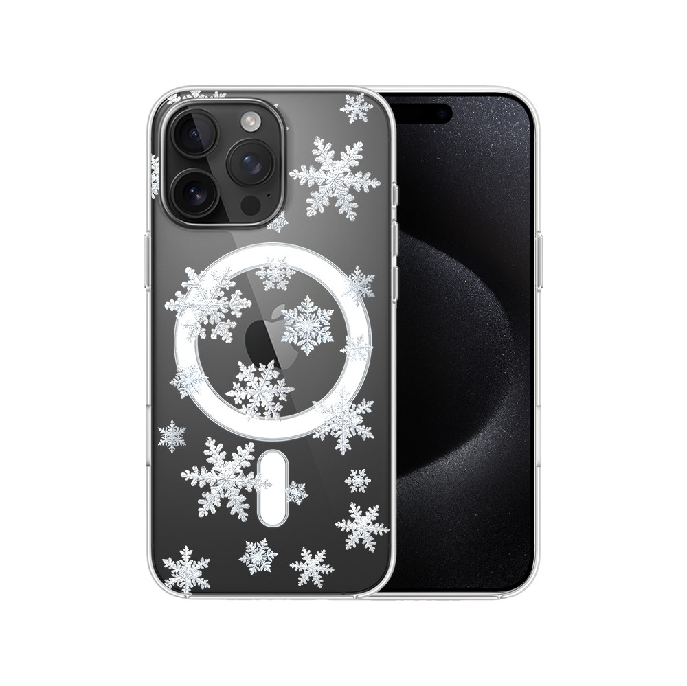 • Etui do iPhone 15 Pro z MagSafe, delikatne płatki śniegu, przeźroczyste