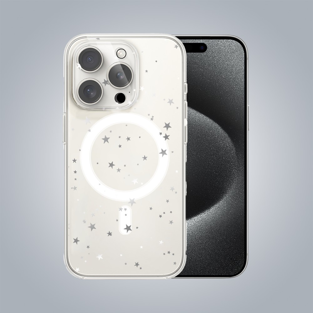 • Etui do iPhone 15 Pro z MagSafe, szampańskie gwiazdki, przeźroczyste