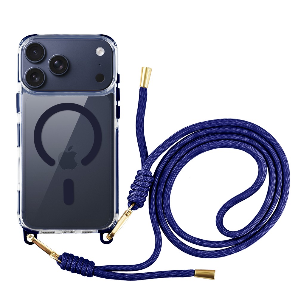 Etui do iPhone 17 Pro Max, pancerne, z osłoną aparatu i metalową podstawką MagSafe, granatowe