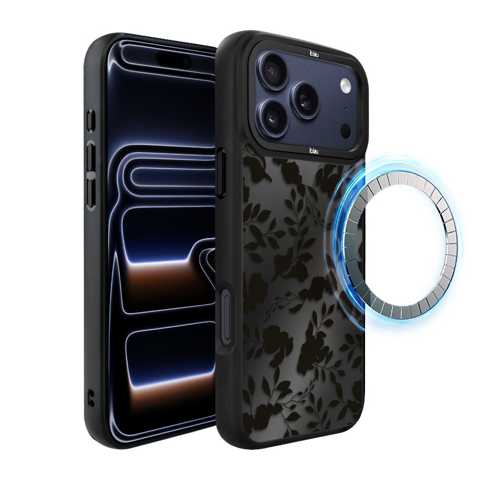Etui do iPhone 17 Pro Max IBIZU DropGuard Matt z MagSafe, Midnight, Dotyk kwiatów