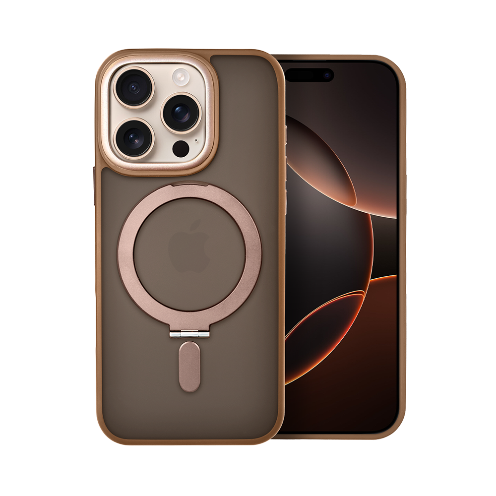 Etui do iPhone 16 Pro Metal Cam MagSafe Stand z podstawką, twarde, półprzeźroczyste, brązowe