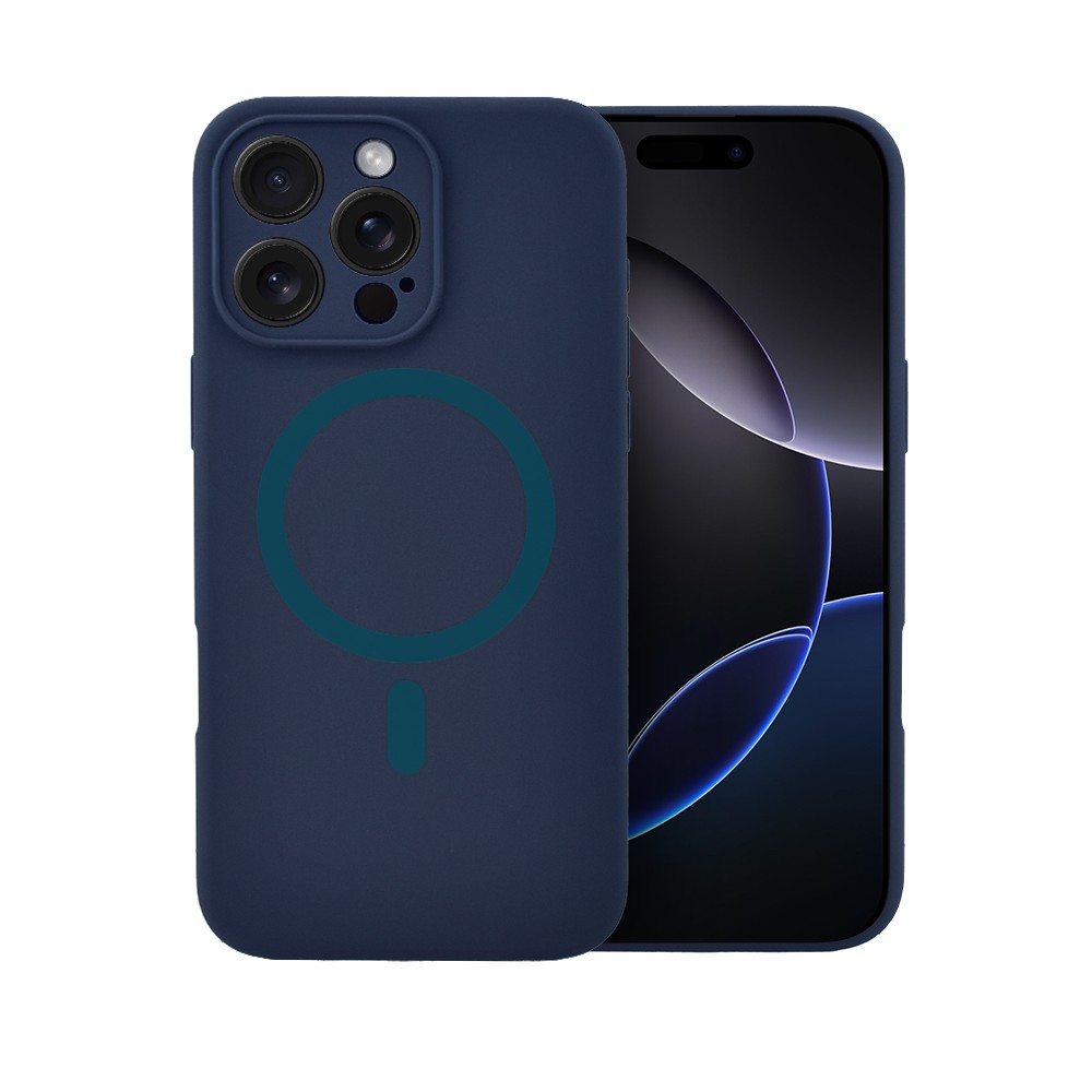 Etui do iPhone 16 Pro Max, silikonowe z MagSafe, mikrofibra soft touch z osłoną na aparat, granatowe
