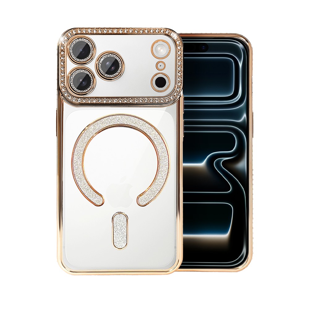 Etui do iPhone 17 Pro Max MagSafe Luxury Protect przeźroczyste, hybrydowa ochrona kamery, złote