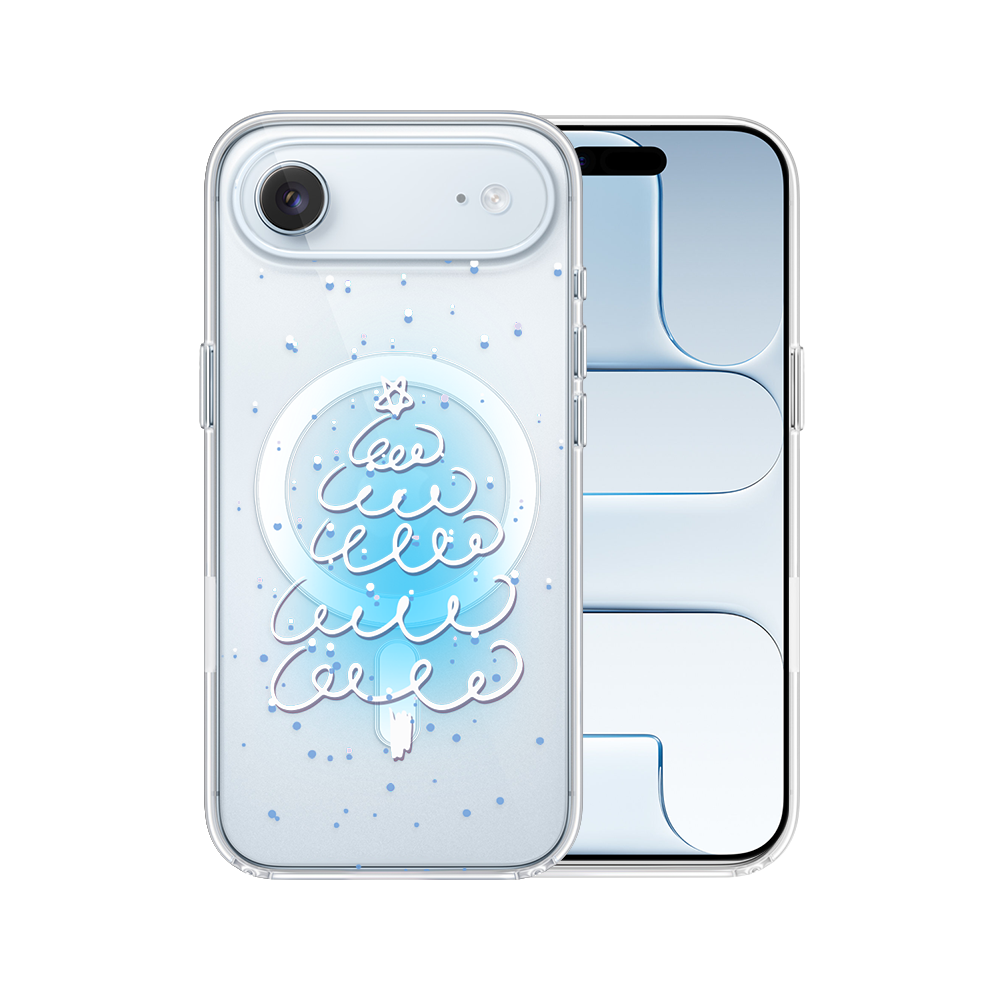 Etui do iPhone Air z MagSafe, malowana choinka na niebieskim świetle, przeźroczyste